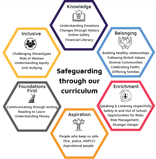 Assemblies, PSHE lessons, and class discussions are used to ensure children have knowledge of safeguarding. Explicit lessons on online safety, financial literacy and changes throughout history all give children the knowledge they need to keep safe.